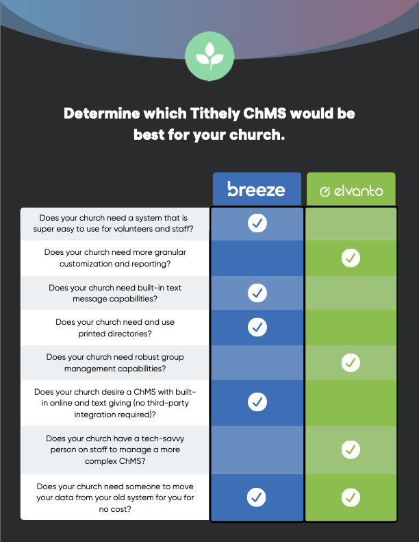 - Reach out to Support for Discount: Those who use Breeze in their All Access plan get a cheaper subscription price, reach out to support@tithe.ly to make sure your billing is correct!