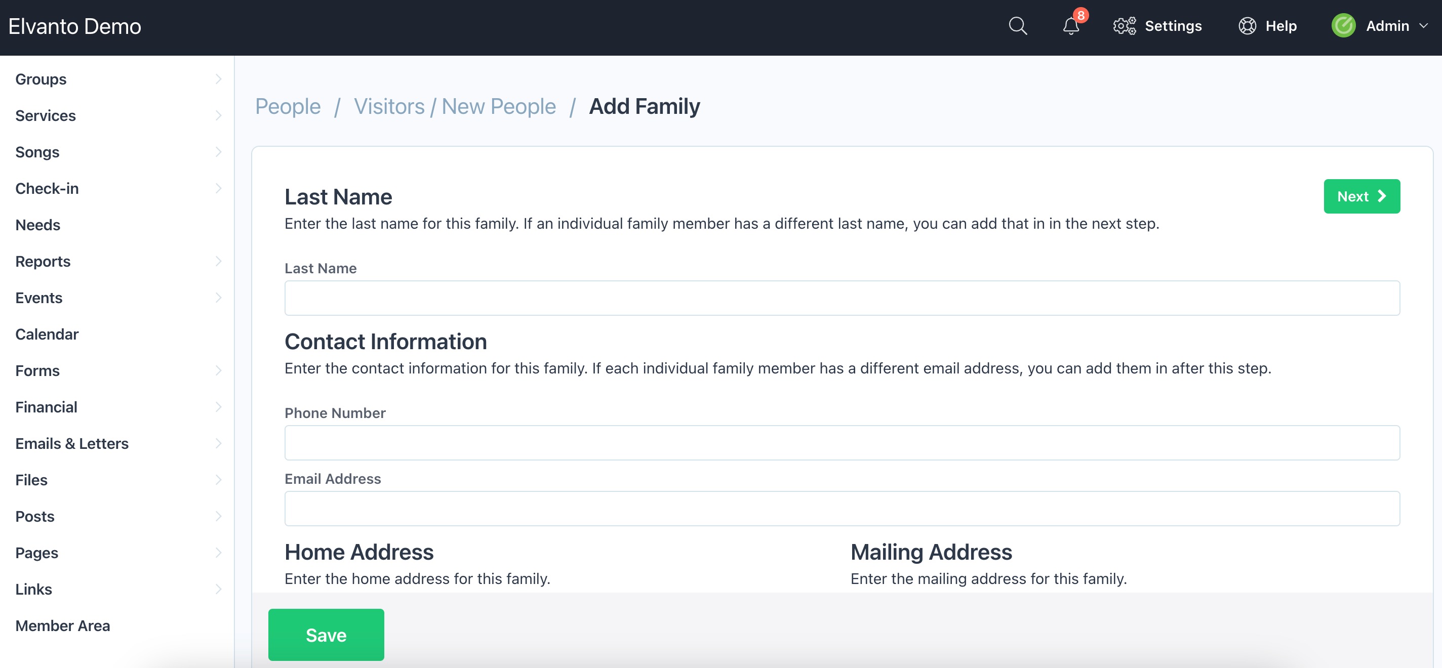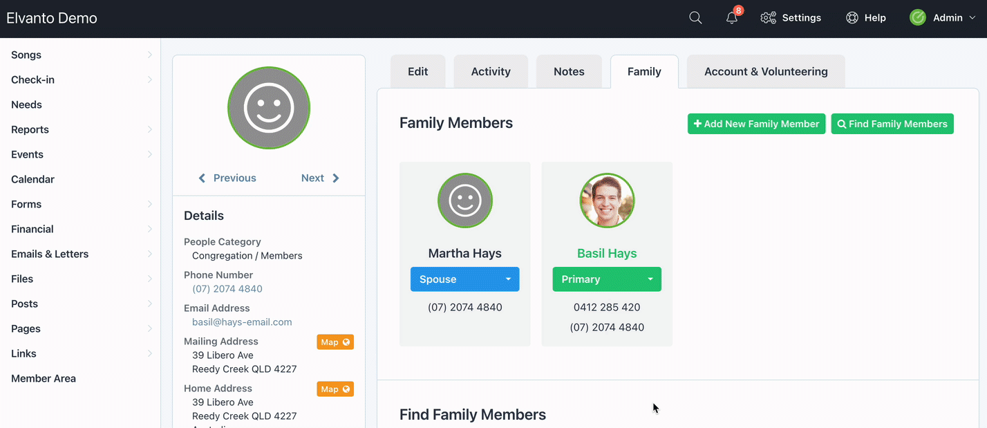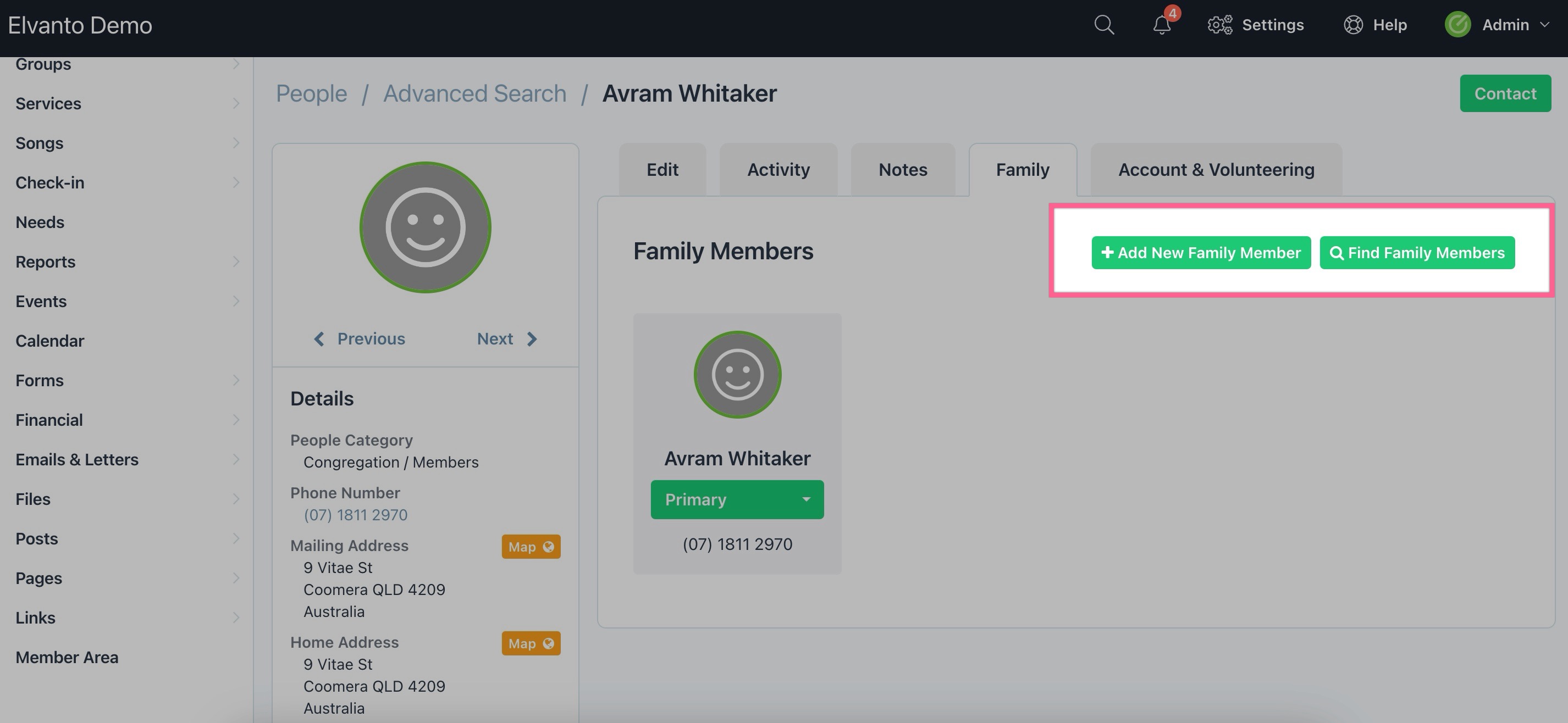 In conclusion, whether it's through the People section, check-in area, or service management, Elvanto empowers administrators to efficiently manage family information, fostering a more cohesive and responsive community environment.